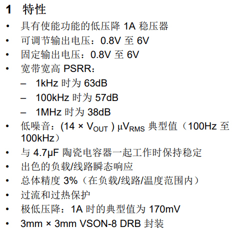 打开TPS7A80数据表,可以看到数据表中的特性说明也是主要围绕上面几点给出的:
